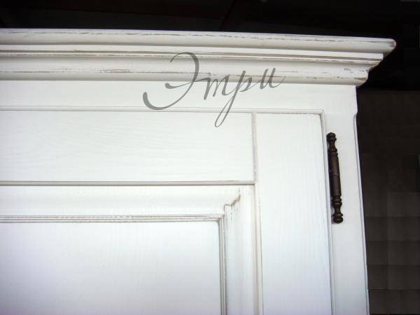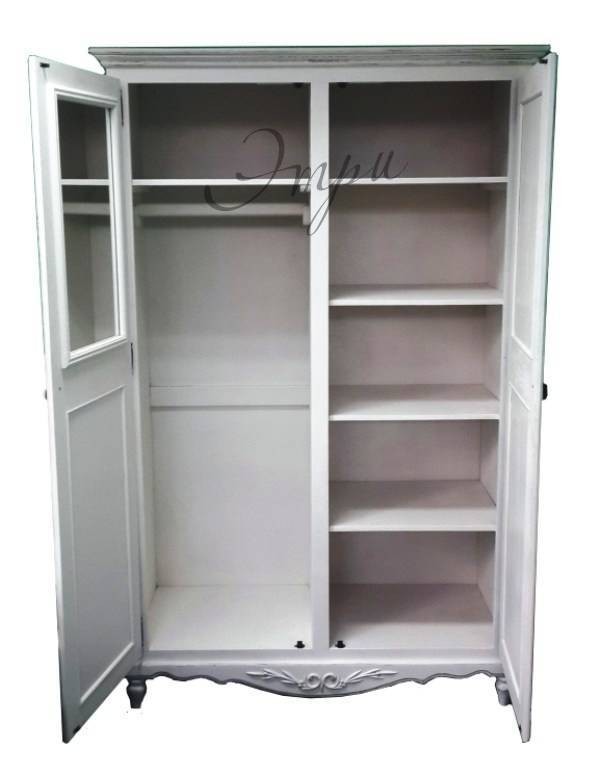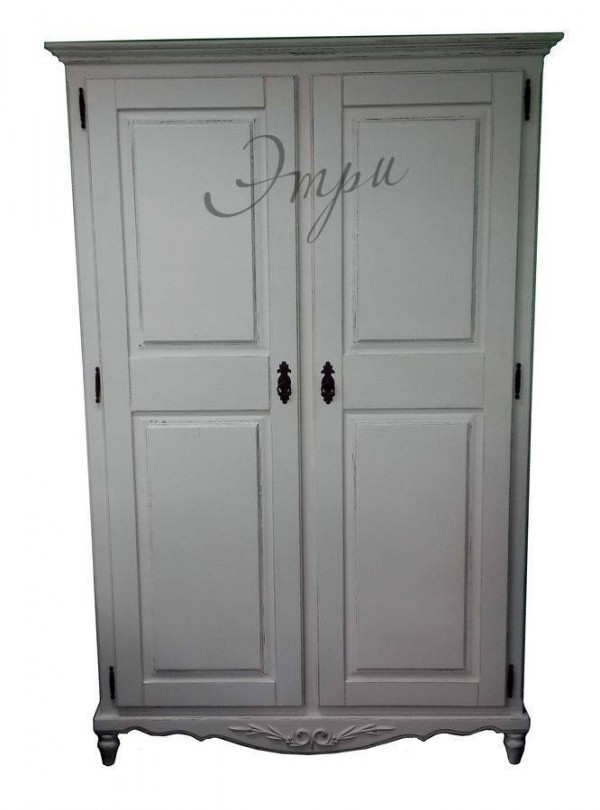 Шкаф 2-х дверный, комбинированный из массива сосны. На внутренней стороне двери расположено зеркало. Выполнен в стиле "Прованс".